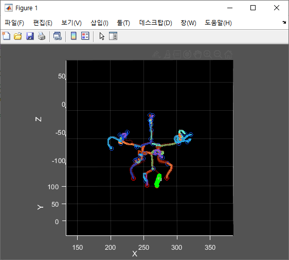 ① Execute the mat file of the vessel to be visualized as a matlab. In this case, the mat file is a mat file generated when feature extraction is performed.